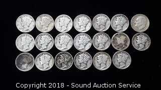 Lot #0022: (20) 1923-1945 90% Silver Mercury Dimes