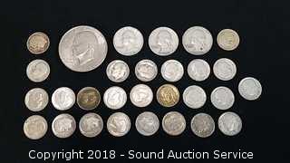 Includes: (3) 1946-63 Washington Quarters, 1972 Eisenhower Dollar, (24) 1946-67 Roosevelt Dimes, and 1942 Mercury Dime. ATTN: We are not coin experts or graders, please use your own judgement when bidding.