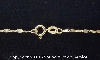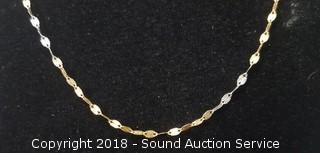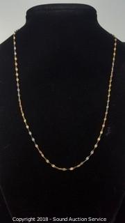 Each link is cut into a star burst pattern. Yellow gold, rose gold, and white gold tones. Approx. 18" L. Total weight: 1.2 grams. ATTN: We are not jewelry experts or appraisers, please use your own judgement when bidding.
