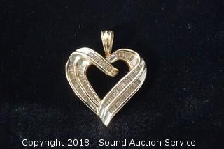 Lot #0157: Incredible 10K Gold & Diamond Heart Pendant