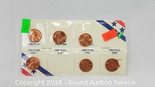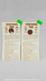 Includes: 2 Lincoln-Kennedy Pennies, 1982 Lincoln Cent Collection, and Lincoln Memorial Penny Collection 1959-2007 (Only missing 4 coins). ATTN: We are not coin experts or graders, please use your own judgement when bidding.