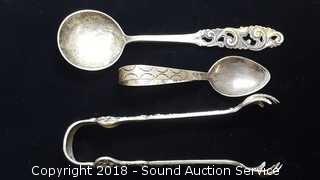 Tongs and 2 spoons. Total weight: 71.6 grams.