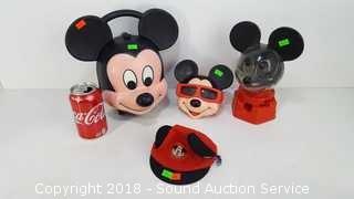Includes: Aladdin Mickey Mouse Lunch Pale w/Thermos, Gumball Machine, Viewmaster, and Hat Coin Pouch.