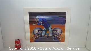 One of the football posters is signed, cannot make out signature, please refer to photos. Approx. 15" x 21" to 22" x 33".