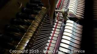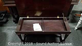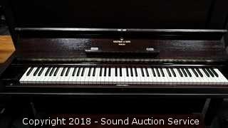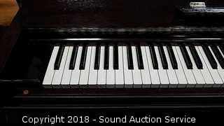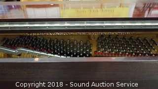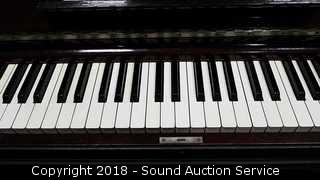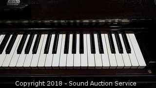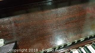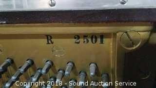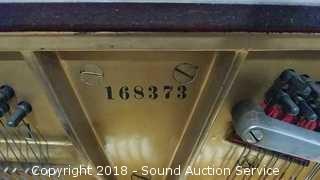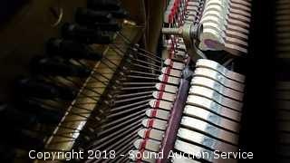 Comes with matching lift top bench. New York Hamburg. Serial 168373. Model R2501. Everything works and plays really well, very close to in tune. Some cracking to the lacquer on the finish. Approx. 49" H, 57" W, 26" D.