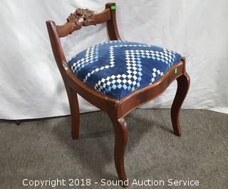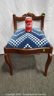 Lot #0141: Antique Ornate Mahogany Cushioned Stool