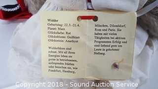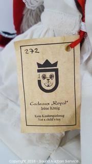 Has original German tag, dated 1997. Believe his name is Widder. Tag says Cadeaux Royal Irene Konig. Comes with cloak accessory. Approx. 14" H.