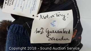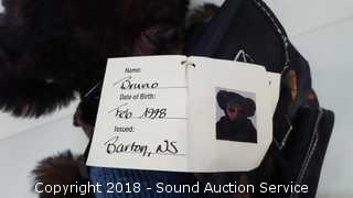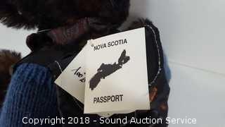 Has original tag and artist signed. His name is Bruno. Dated of birth February 1998, Barton Nova Scotia. Fully jointed, suede paws, poly filled. Has original price tag of $260. Approx. 17-1/2" H.
