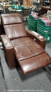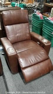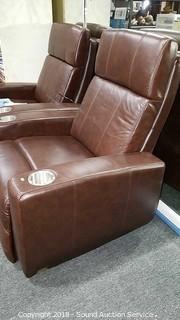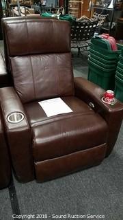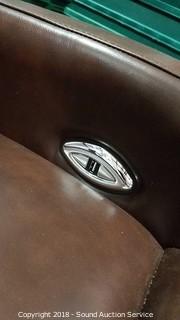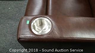 Tested, works. Has stainless cup holders on each arm, USB port. Does not appear to have ever been used. Comes with assembly instructions. Approx. 22" wide seat, 34" wide overall, 42" H.