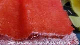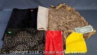 Red, Yellow, Leopard Print, Beige, Golden Brown and Black. Largest piece is approx. 16" x 56", smallest is approx. 8" x 8".