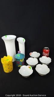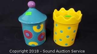 Lot #0123: 9pc. German Pottery Bowls, Canisters & Vases