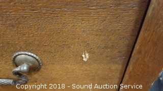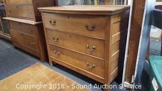 Skeleton key locks, no keys. Dovetail construction. Approx. 31" H, 38" W, 19-1/2" D.