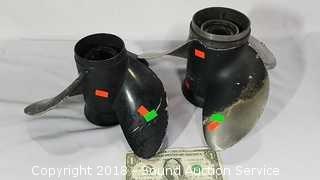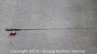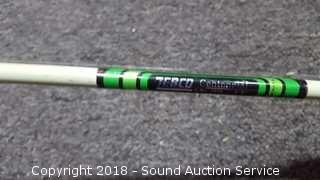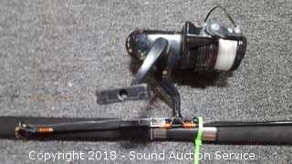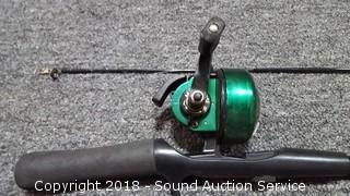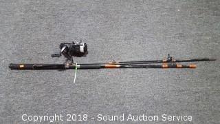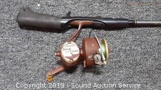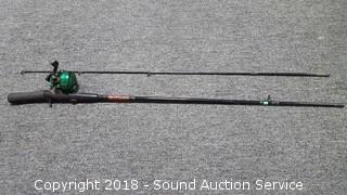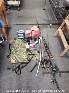 SpinMaster 2pc. 7ft Casting Rod & Reel (Medium to Heavy Action Rod. Model G72BZ. Reel is a Shakespear Alpha Graphite, has some corrosion), 5.5ft Pistol Grip Shakespeare Rod w/Langley Reel (Rod is a Pro Am Light Action 4-8lb line. Model SC2056. Reel is a Langley Spin Deluxe Model 830), Shakespeare 2pc. 5.5ft Casting Rod w/Zebco Reel (Rod is Model SP2056. Light Action. 4-8lb line), Vtg. Zebco 5.5ft 2pc.Centennial Rod w/404 Reel (Rod is fiberglass, Model 4040. Comes with matching reel), Shakespeare Ranger 6ft Rod w/Johnson Reel (Rod is medium action, 6-12lb line, Model RSC602M. Reel is Johnson Anniversary Edition), 1 Gallon & 1.5 Gallon Gas Cans, Field Staff Mossy Oak Full Strut Turkey Vest - S, 1.5 Gal of 2 Stroke Marine TC-W3 Engine Oil, NIP Trailer Y-Harness & Submersible Trailer Light (20' long wiring on the Y-Harness & 8 Function Submersible Stop/Tail/Turn Trailer Light. Both are NIP), Panther Adjustable Transom Saver 28" to 59", and Pair of 10" and 12" Boat Propellers.