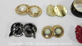 21 Various Genre Music CD's, 22 Various Country & Rock Music CD's, Grandma, Grandpa & Mother Signs, Scalloped Punch Bowl Set & Matching Dish, 4 Norman Rockwell Mugs & 2 Ceramic Bells, Jewelry Box & Jewelry Chest, Pottery Whiskey Jug & Vase, 25th Anniversary Plate, Teacup & Photo Album, Pair of Pottery Vases, 13" x 20" Bamboo Framed Mirror, Fashion Jewelry Earrings - Clip On & Pierced Ear, 20 Pairs of Fashion Jewelry Earrings & 2 Bracelets, Fashion Jewelry Earrings - Pierced & Clip On, Fashion Jewelry Earrings - Pierced & Clip On.