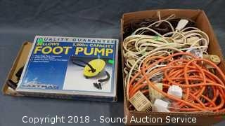 Lot #0215: Extension Cords, Plugs & Bellows Foot Pump