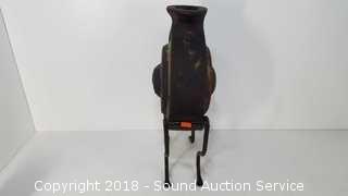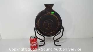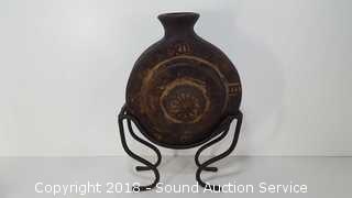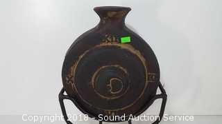 Lot #0091: Handmade Pottery Jug w/Wrought Iron Stand