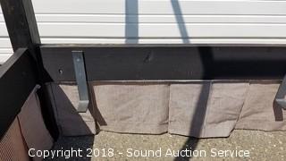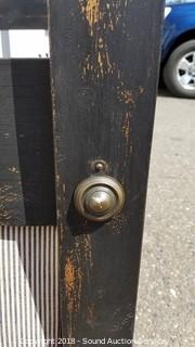 Has a nice black shabby chic finish, built in bed skirt. Approx. 80" H, 43-1/2" W, 86" L.