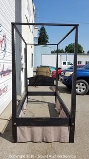 Lot #0048: Solid Wood Twin Size Black Canopy Bed