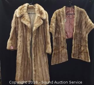 Lot #0097: Vtg. Genuine Fur Long Coat & Shawl