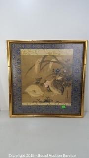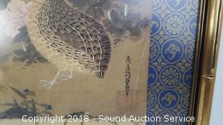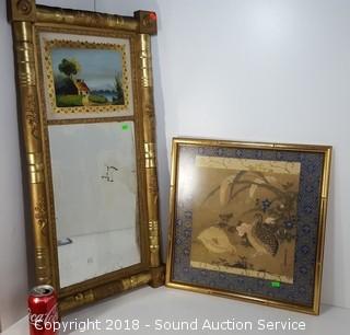 Lot #0100: Vtg. Mirror & Japanese Pheasant Artwork