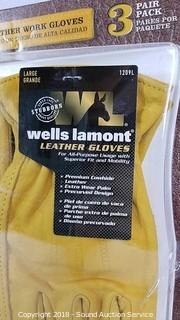 Lot #0228: 3-Pack Wells Lamont Premium Leather Work Gloves -L