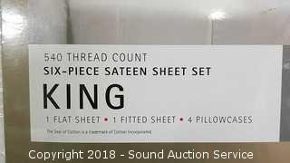540 thread count. 1 flat, 1 fitted, 4 pillowcases. Comes in original packaging.
