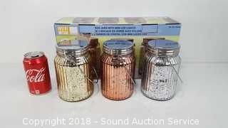 Lot #0012: Set of 3 Glass Jars w/Mini LED Lights