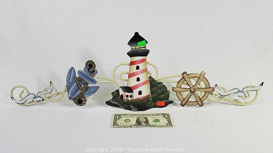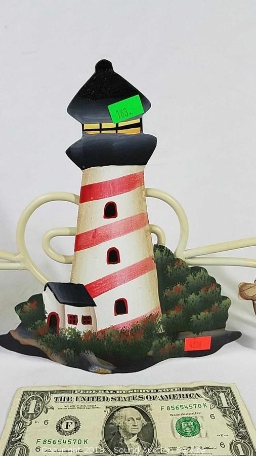 Wrought Iron & Tin Metal Art Lighthouse Decor (Hand painted. Approx. 28" L, 9" W), 15 Various Ball & Kerr 1QT Canning Jars.