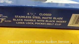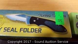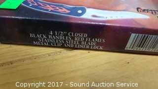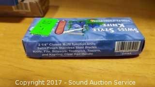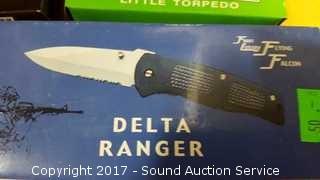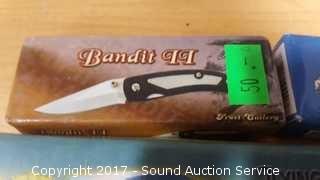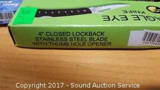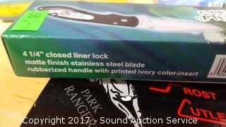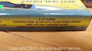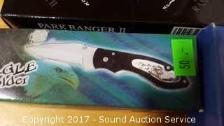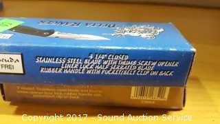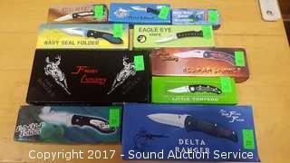 Includes: Bandit 3" Key Chain Knife W/ Belt Clip, Delta Ranger 4" Knife, Eagle Eye 4" Lock Back Knife, Navy Seal Folder 4 1/4" W/ Belt Clip, Red Man Skinner 4 1/2" Knife W/ Belt Clip, Park Ranger II Folding Knife W/ Sheath, Little Torpedo Folding Knife W/ Belt Clip, Liner Lock Knife W/ Belt Clip, Delta Ranger 4 3/4" W/ Liner Lock & Belt Clip, 2 1/4" Swiss Style Key Ring Knife, Eagle Folder 4 1/4" Liner Lock Knife.