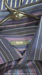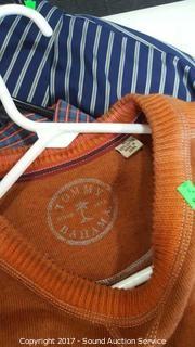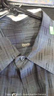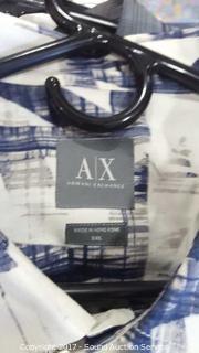 21 shirts total. Most are in excellent condition. Includes: Tommy Bahama, Nordstrom, Armani Exchange, Bugatchi, Zanella, Eddie Bauer, and more. Please refer to photos.
