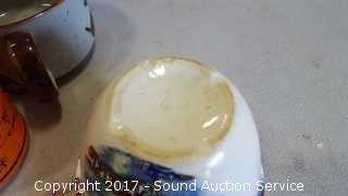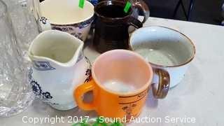 Lot #0002: Crystal, Vaseline & Pottery Glasses & Mugs