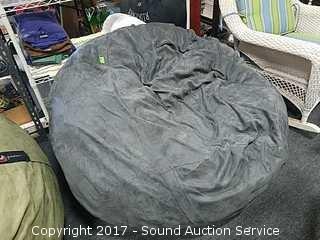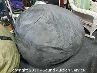 Lot #0205: Huge Gaurrer Grey Microfiber Bean-Bag Chair