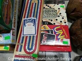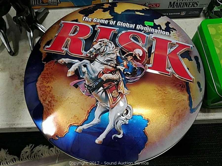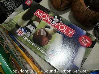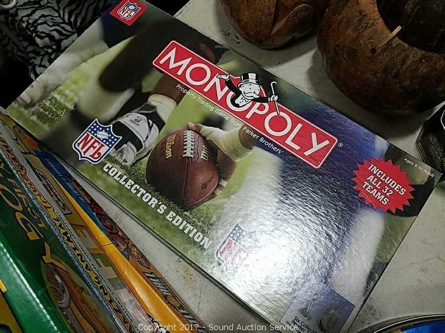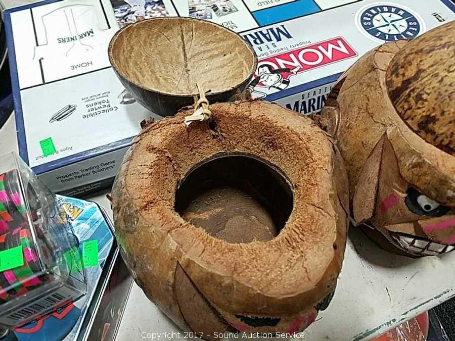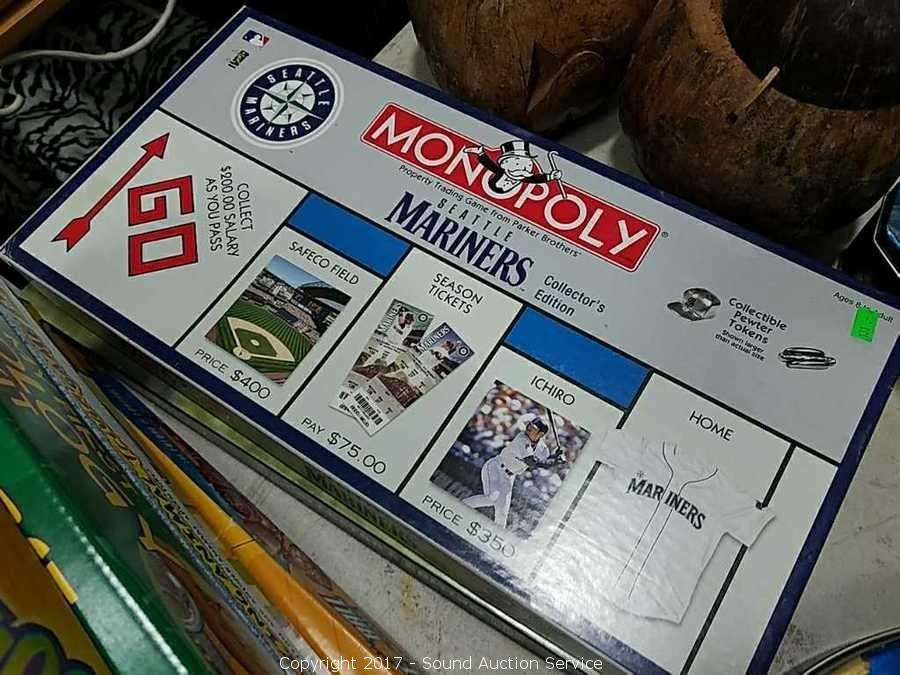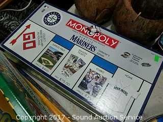 Includes Seattle Mariners monopoly, NFL monopoly, Risk, football helmet, Yoshi tin lunch pale, coconut carvings, battery operated dinosaur, cribbage, and more. Please refer to photos.