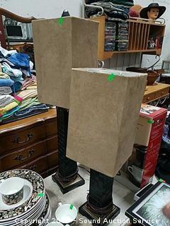 One of the lamps is missing the wire bracket for the shade. Approx. 30" tall.