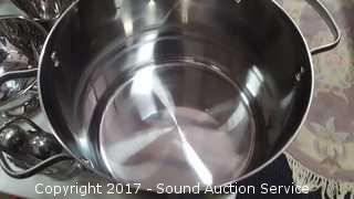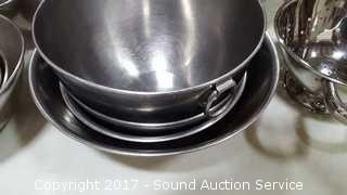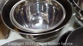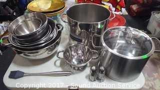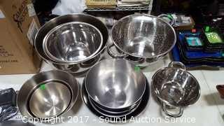 Lot #0189: Stainless Steel Mixing Bowls, Pots & Strainer