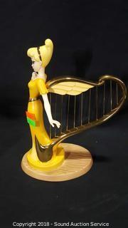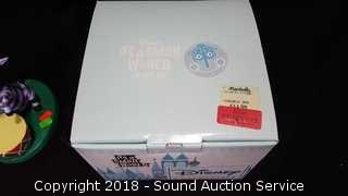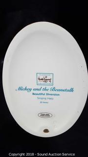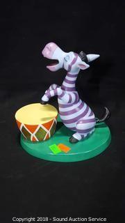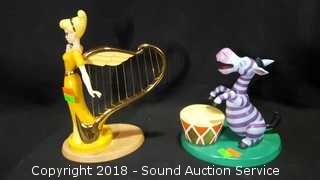 Includes: Mickey & The Beanstock Singing Harp Sculpture, and Its a Small World Jungle Precussion Zebra Africa Sculpture. Both come with original box. Approx. 6" and 8" H.