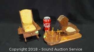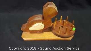 Lot #0204: 2 Unique Wooden Sewing Spool Holders