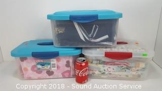 Lot #0117: 3 Sterilite Totes Loaded w/Sewing Fabric
