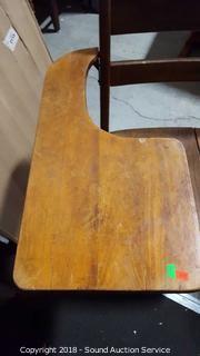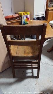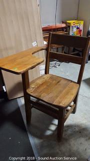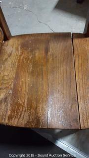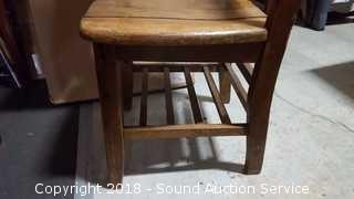The seat is split in two places. Overall approx. 33" H, 21-1/2" W, 25" D.