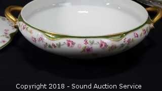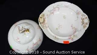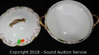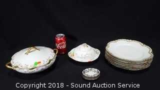 Includes: 4 German Schrvarzenhammer Condiment Dishes, Haviland Limoges Covered Dish, 8" Covered Serving Bowl, and 9-1/2" Plates.