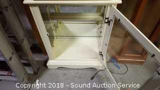 Lot #0140: Lighted Mirrored Back Glass Shelf Curio Cabinet