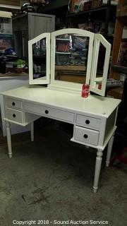 Lot #0113: Like New Modern Cream Vanity w/Mirror