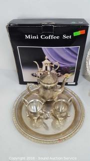 Includes: Mini Coffee Set in Original Box, Tableware Set w/Stand, and 7" Ruby Flash Cut Crystal Bowl.