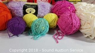 Lot #0128: Tote Loaded w/Yarn, Thread & Pillow Forms