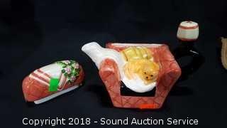 Includes: Chair Trinket Box, Couple Planter, Chair Personal Teapot, and Cloth Doll.
