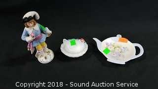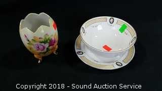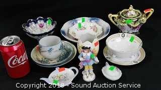 Includes: Hand Painted Nippon Sugar Dish, Miniature Hen on Nest, Hand Painted Nippon Footed Dish w/Plate (Has a small chip), Lefton Footed Hand Painted Egg Dish, Vtg. German Figure (Has Been Repaired), MNZ Austria Dish, and Rosenthal Tea Setting.