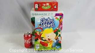 Includes: In A Pickle Card Game, Chutes and Ladders, and Q-Ba-Maze Marble Maze Game.
