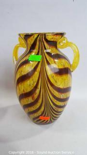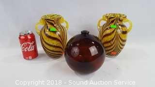 Lot #0123: 2 Beautiful Art Glass Vases & Ball