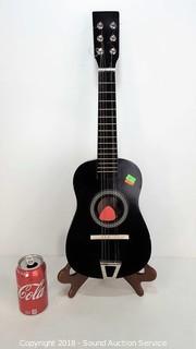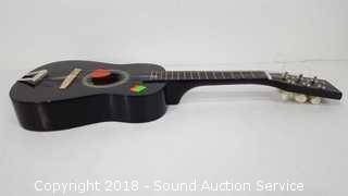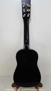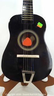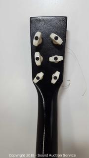 Approx. 23" L, 7-1/2" x 2". One string is missing, needs new strings and tuned.