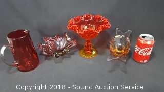 Lot #0332: Beautiful Art Glass, Amberina Compote & Pitcher